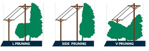 Nelson Tree Service uses pruning methods approved by the National Arborist Association in our distribution system. Examples of these methods are shown below. While trees may appear unbalanced after trimming, the appearance will soften over time. Contractors may also cut down trees in the right-of-way with member approval.