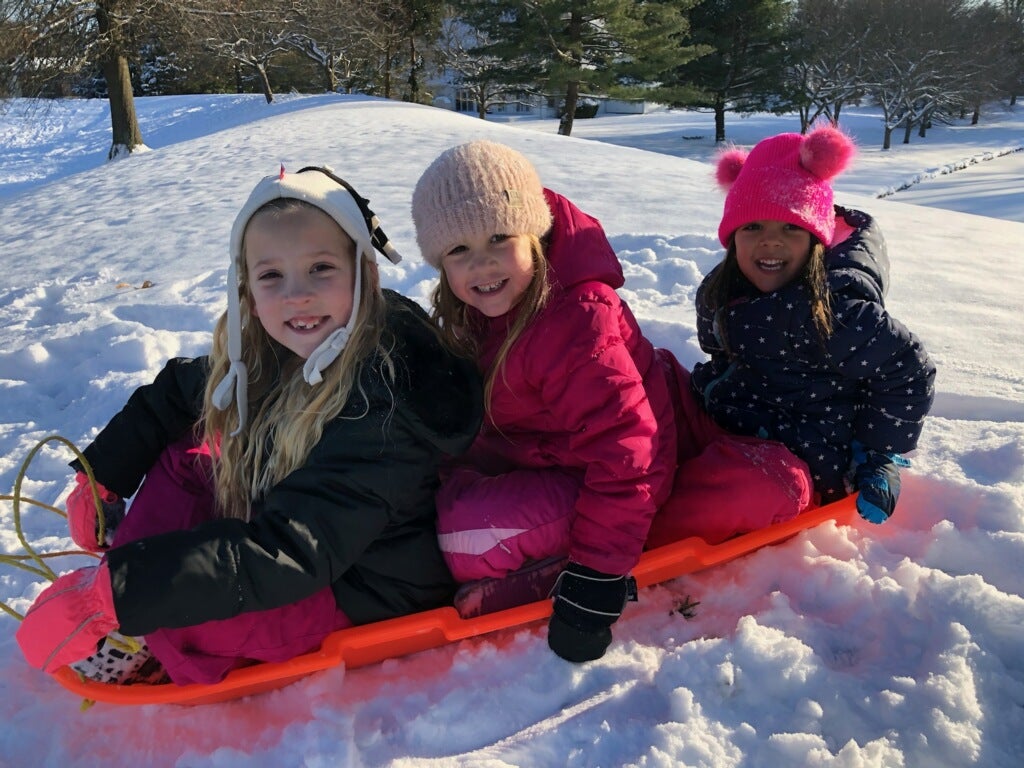 My three grandchildren, Hailey, Miley and Nora, sledding in Granville.
