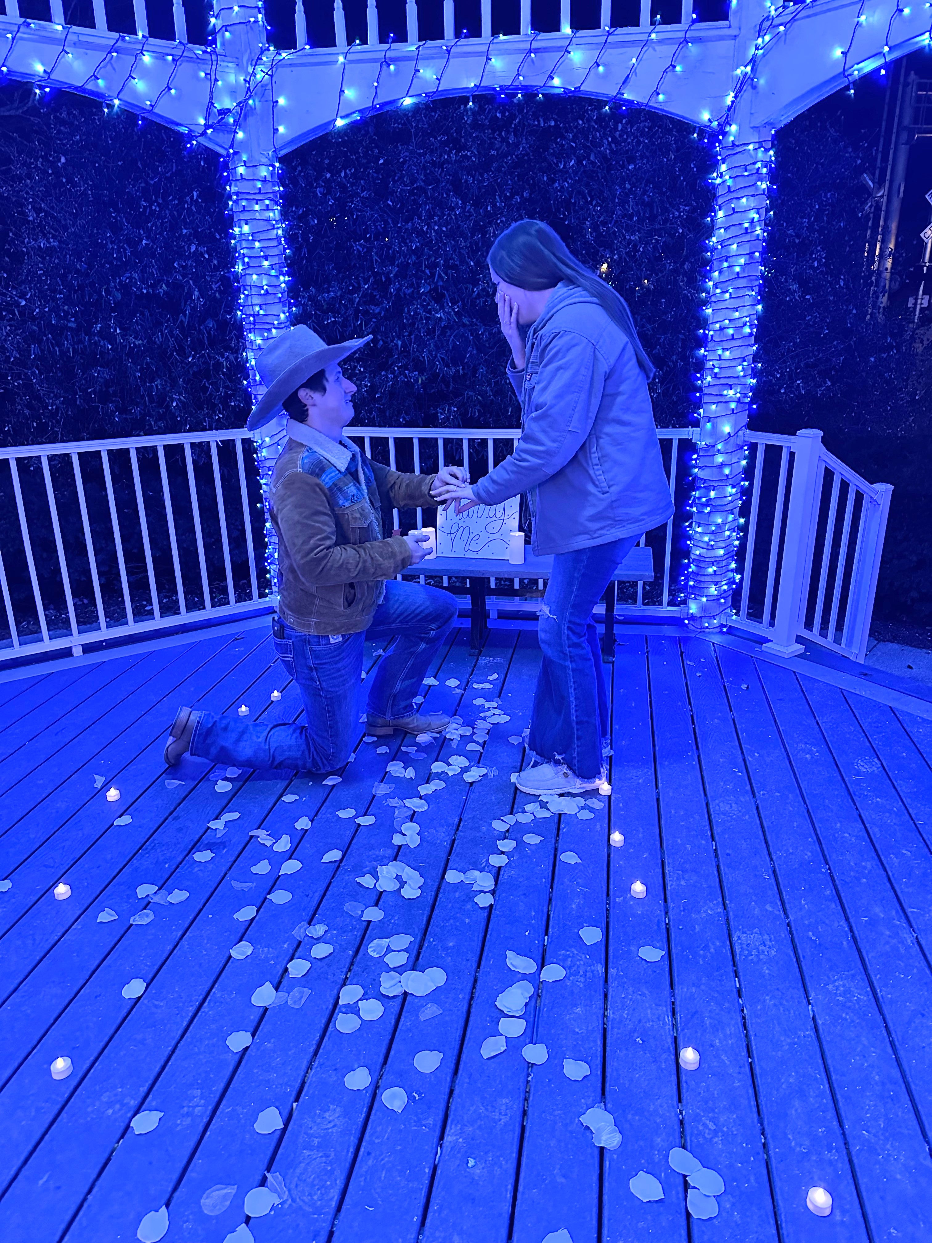 Alex Hildreth proposing to our daughter, Megan Jones, at the gazebo in Kent, Ohio.