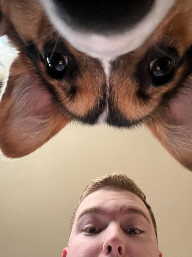 Not quite sure who was photobombing whom in this picture of my son, JD, and his corgi puppy, Minnie!