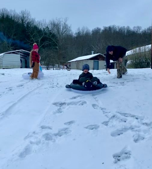 Having fun in the snow!!! Our son, Jason Jones, and grandchildren, Jasie and Jamison.