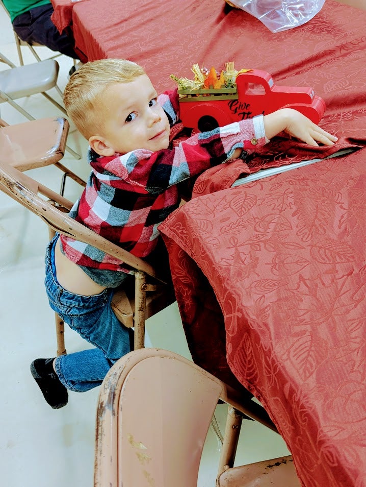 My great-nephew, Forrest, was planning to snatch the Thanksgiving table truck decoration when no one was looking.