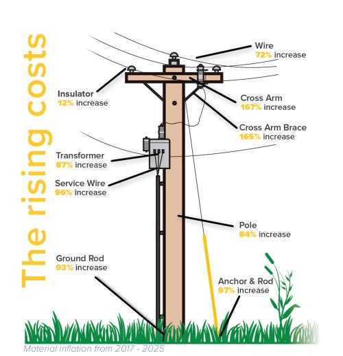 Unfortunately, electric cooperatives are not immune to these same pressures. Inflation and rising costs across the electric industry are primary drivers behind the need for