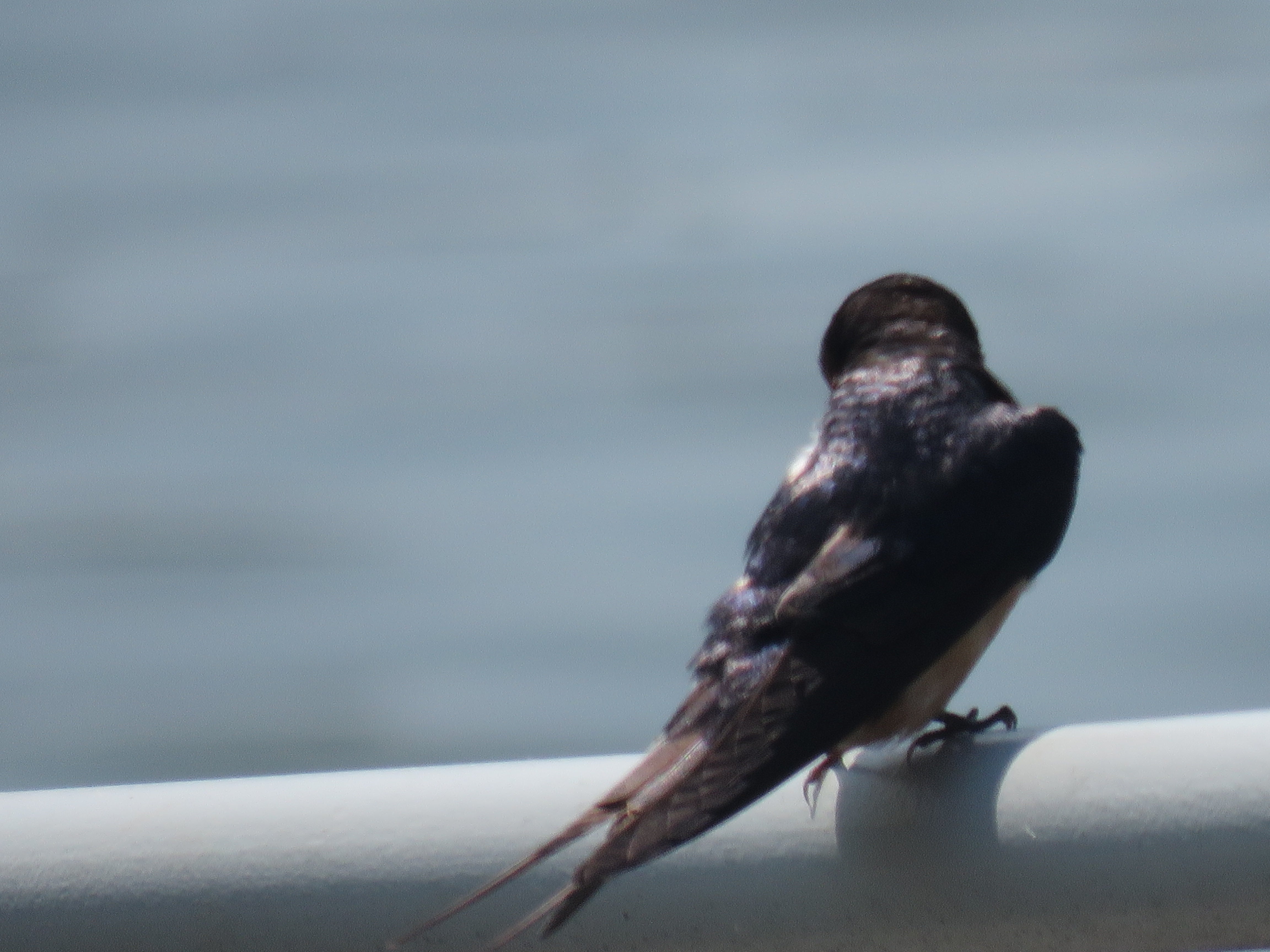 A. Rick: The bird looks to me like an immature barn swallow, meaning hatched sometime this summer. The deeply forked tail is diagnostic, especially when the bird is in flight.