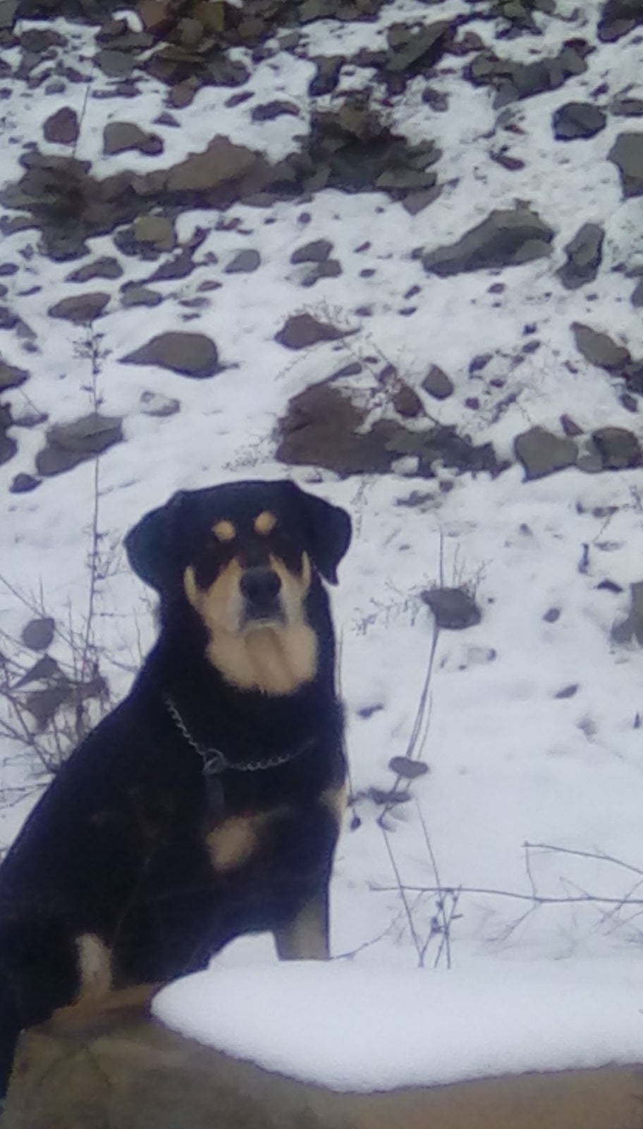Beautiful black lab/Dutch shepherd dog named Bandit, enjoying the snow at the Mohawk Dam in Warsaw.