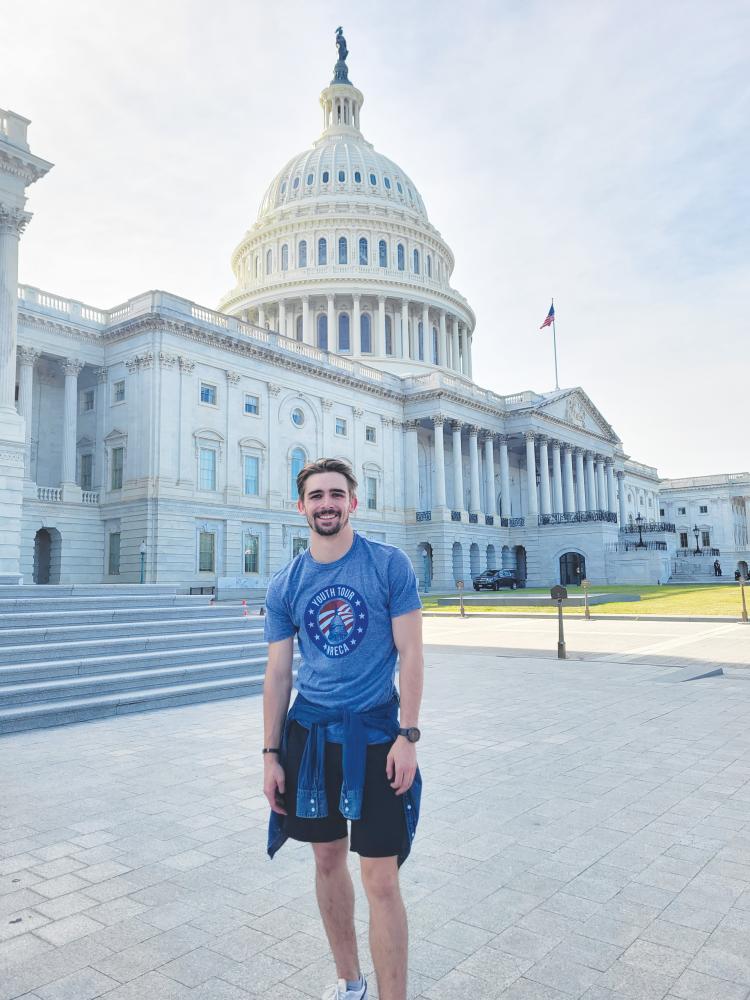 Soon after, he enrolled at Ohio State, with a double major in political science and agribusiness and applied economics, but it didn’t take him long to realize he wasn’t ready to be done with the cooperative programs that had given him so much, and served as one of NRECA’s staff assistants for the 2022 Youth Tour. Formerly referred to as “blue shirts” for the royal blue polos they don during the event, the staff assistants work during Youth Tour to ensure delegates have a memorable, seamless trip.