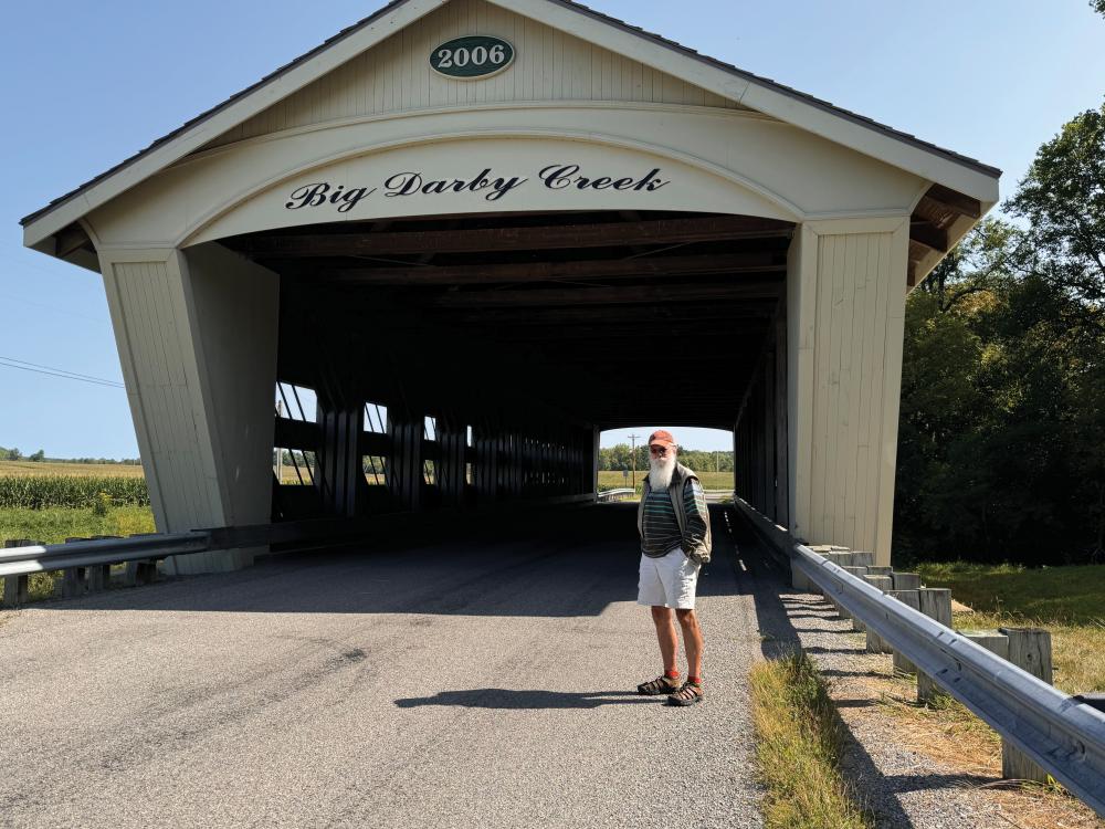 The Buck Run Covered Bridge, built in 2006, spans Darby Creek and is the longest single-span wooden bridge in Ohio at 160 feet in length. The two-lane North Lewisburg Covered Bridge was completed that same year to replace the original 1868 Pottersburg Bridge, which was relocated and restored — and dedicated to Stolte in 2022.
