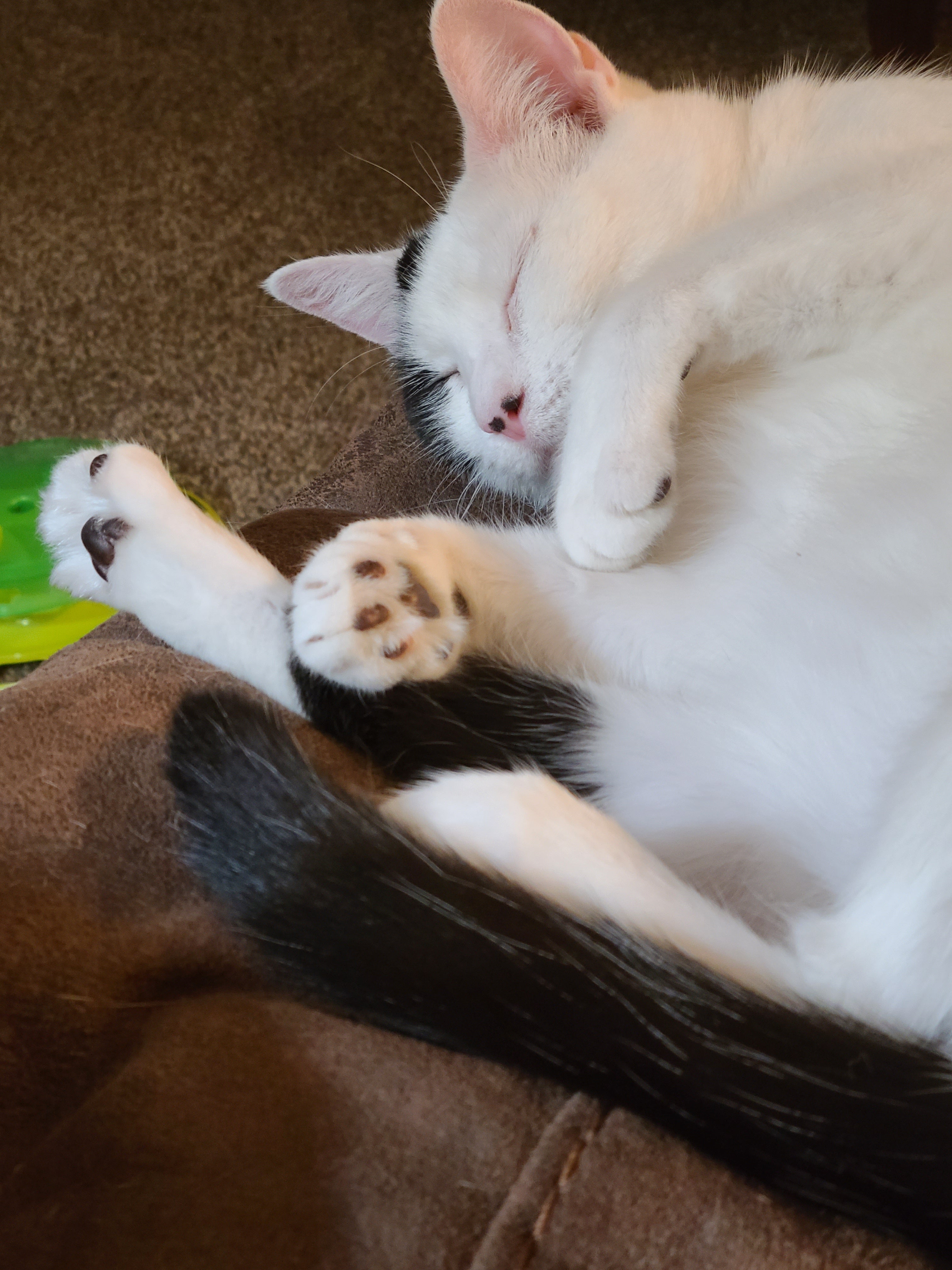 Sweetie J. Moneypenny, our recent adoption, chilling out before bed.