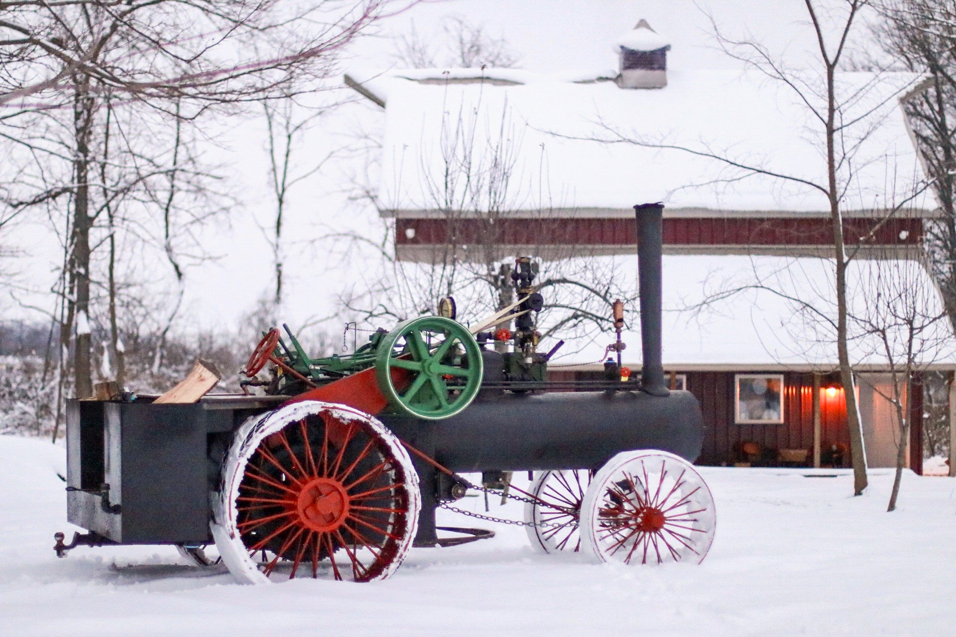 Taking our half-scale Case steam traction engine out in the snow to create a timeless photo.