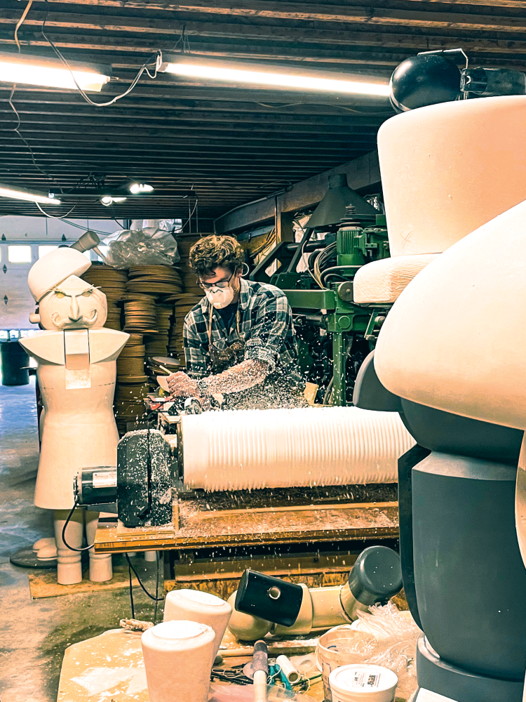 The nutcrackers are carved from Styrofoam, which obviously makes the finished product easier to handle than wooden forms. The foam comes in 200-pound blocks — enough material for 14 figures. It takes roughly 400 hours to design, carve, and paint each one, and at the end of the process, they all get a fiberglass outer skin to afford some protection from the elements. Stutzman estimates an additional 400 hours are spent each year on upkeep and repairs.