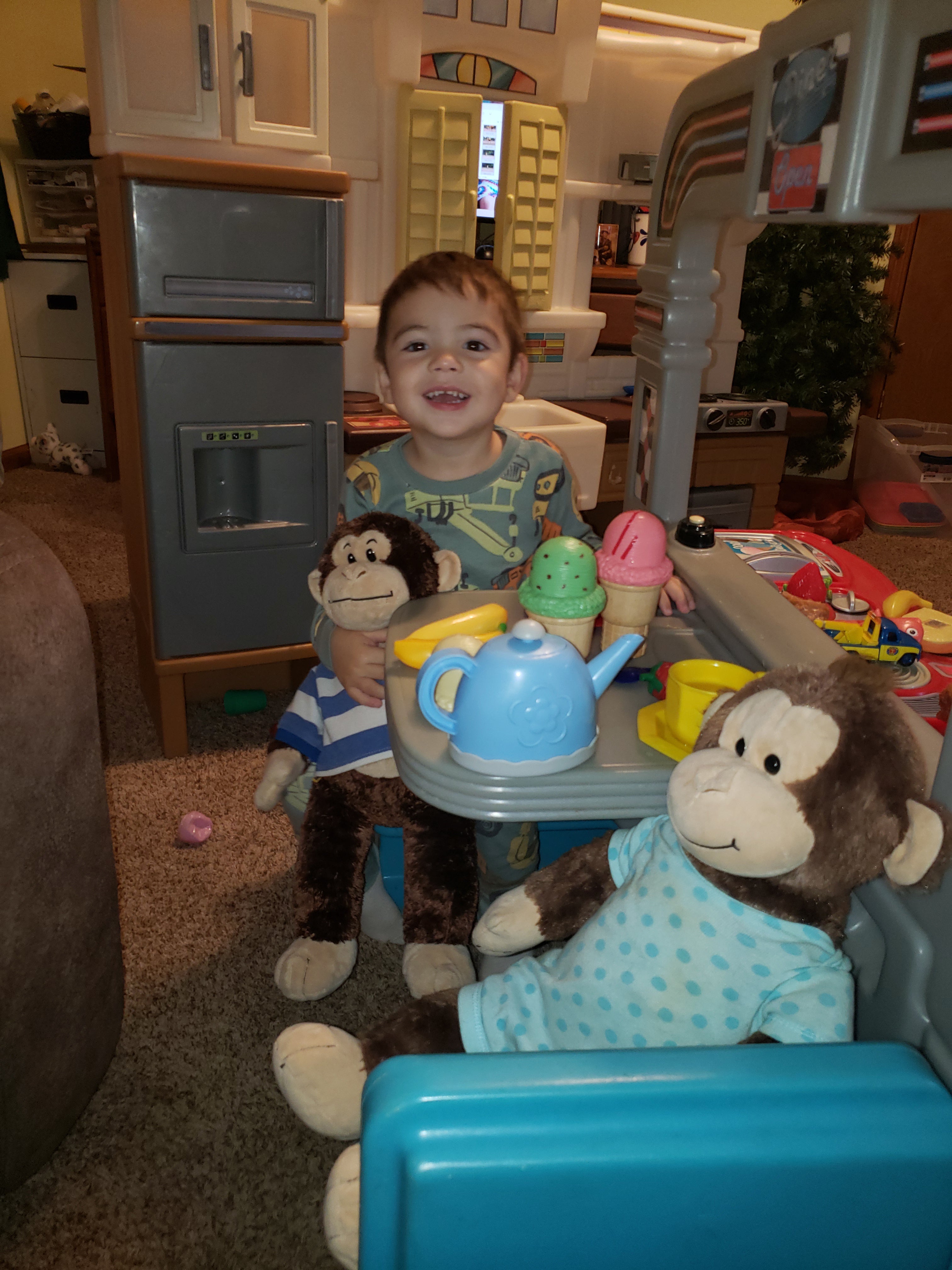 Our grandson, Owen Warnecke, enjoying his tea party with his friends.