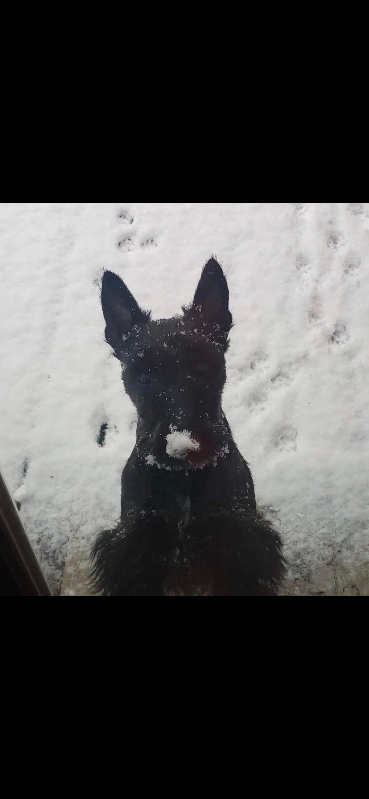 Seamas, our Scottish terrier, wanting back in the house when he was finished playing in the snow.