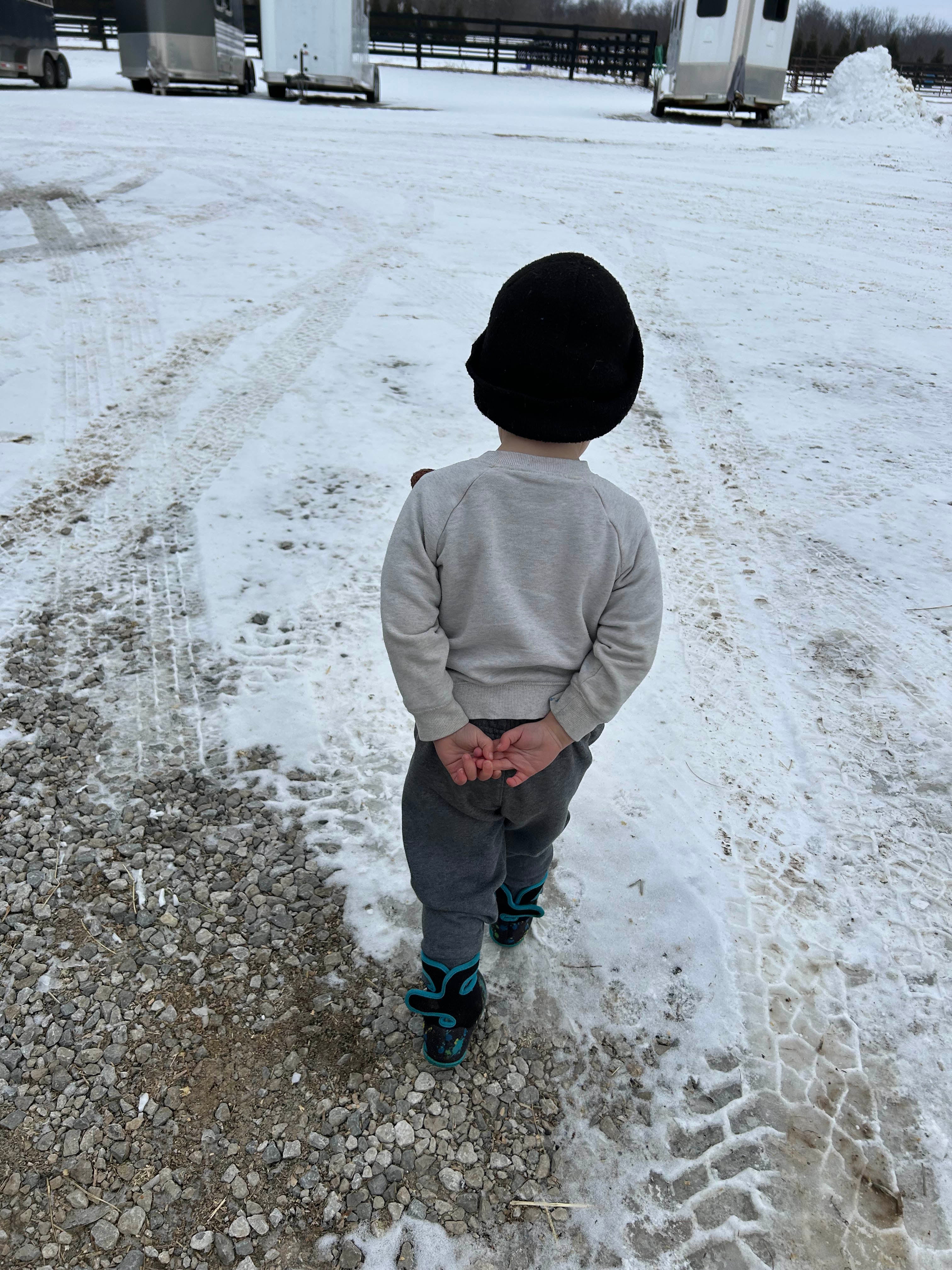 Our farm boy, Isaiah, on a snowy day at the horse barn.