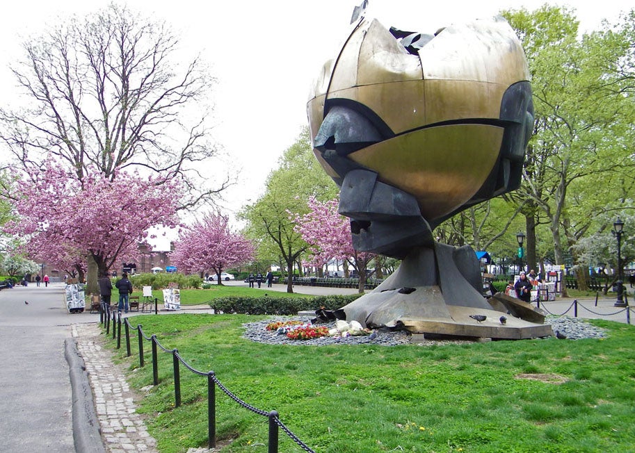 “The Sphere” now standing in Liberty Park, New York City, is a 25 ft. bronze sculpture that stood in the World Trade Center Plaza prior to 911.