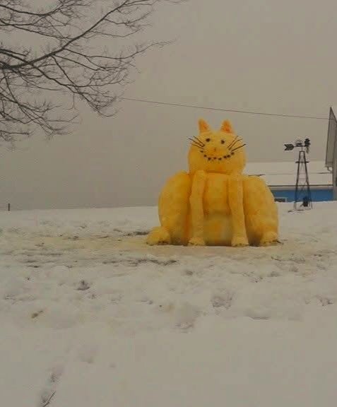 I made a "Snow Cat" to look like our cat, Fat Cat, and some of our cows in the snow.