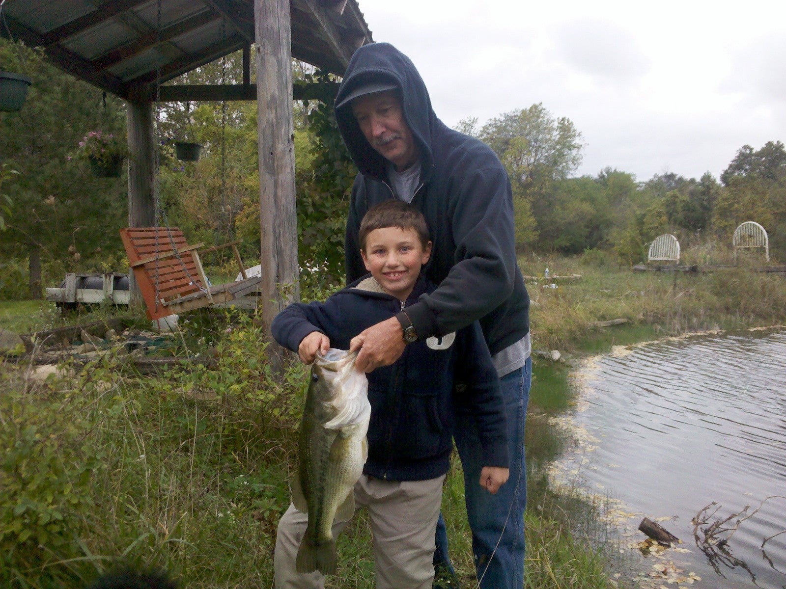Our grandson, Asa, caught this 20-inch largemouth bass in our pond. His grandpa, Jerry Elder, is holding "Billy Bass." He was returned to the pond.