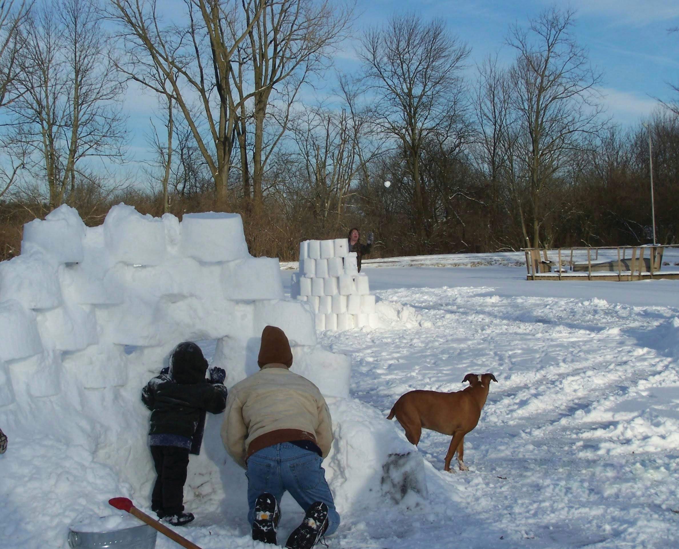 Our sons, Ben and Greg, teaching our grandson, Jake, the art of competitive snowball fights.