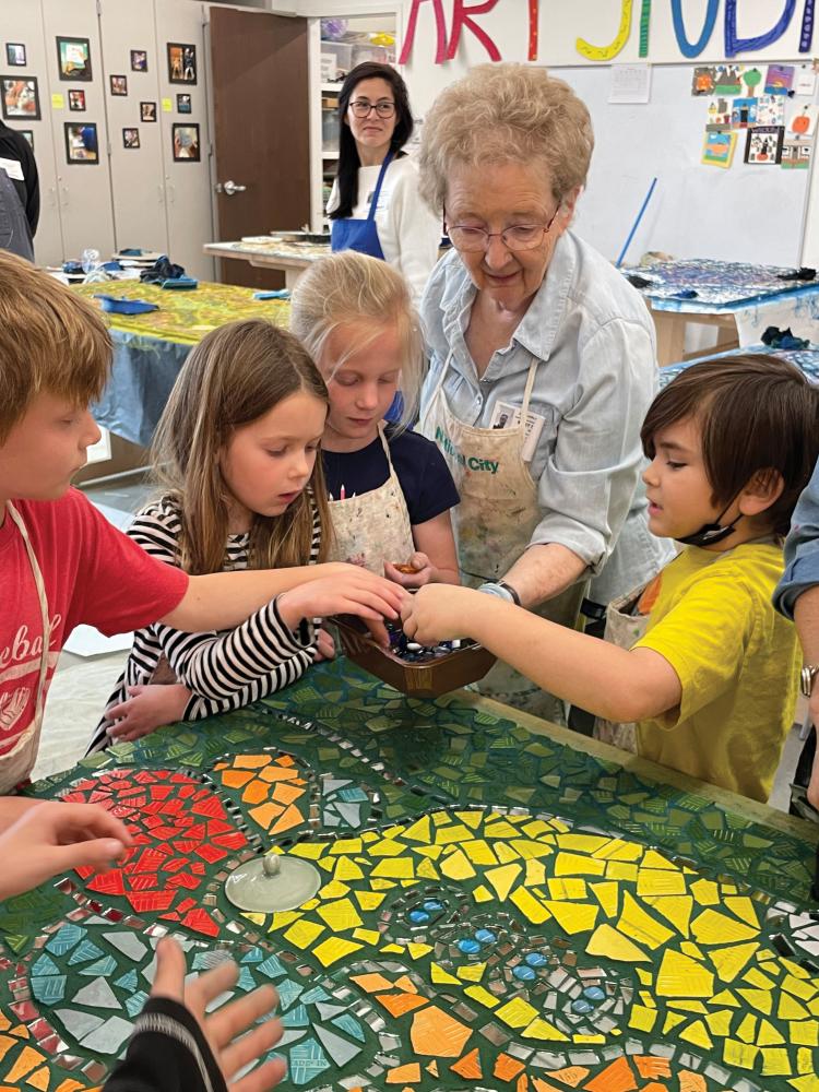The interactive aspect of creating a mosaic has always been important to Corwin, who has 40 years of experience teaching and counseling children with special needs. “The process brings people together,” she says. “It encourages collaborative creativity and interaction.”