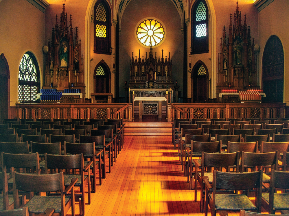 When additional relics were given to the sisters in 1875 and pilgrims began arriving, it became clear that larger accommodations were needed. Two new chapels — including one specifically to house the relics — went up in 1892, and a large, modern, four-story motherhouse was completed in 1901. Visitors can still see the outline of the original brick structure in the courtyard.
