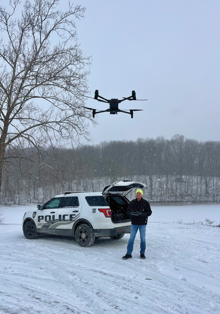 “We had raised about half the money through a police-versus-fire-department ‘Guns and Hoses’ basketball game, but it was going to take us another year or two to reach the $15,000 we needed,” says Police Chief Douglas Gill. “Once we received the grant, we were able to purchase the drone and accessories right away.”