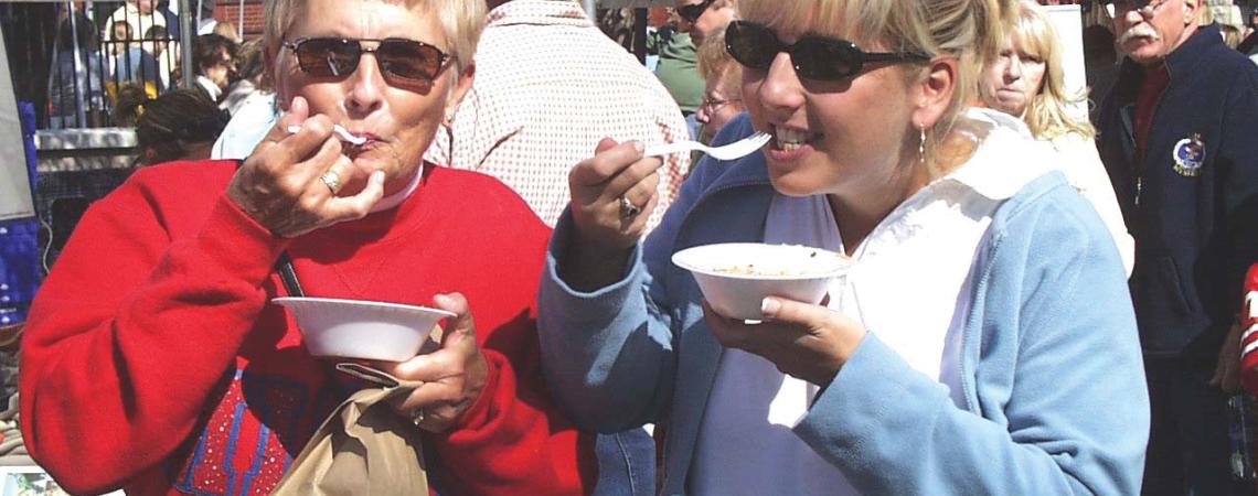 Once, it took a pickup truckload of corn to satisfy festival-goers, with volunteers shucking the ears by hand and cooking them in a butchering kettle donated by Doris Wyckoff, parade grand marshal that year. Nowadays, with visitors consuming more than 100,000 ears of hot, buttered sweet corn, shucking is mechanized, and cooking is done in huge gas-fired troughs.