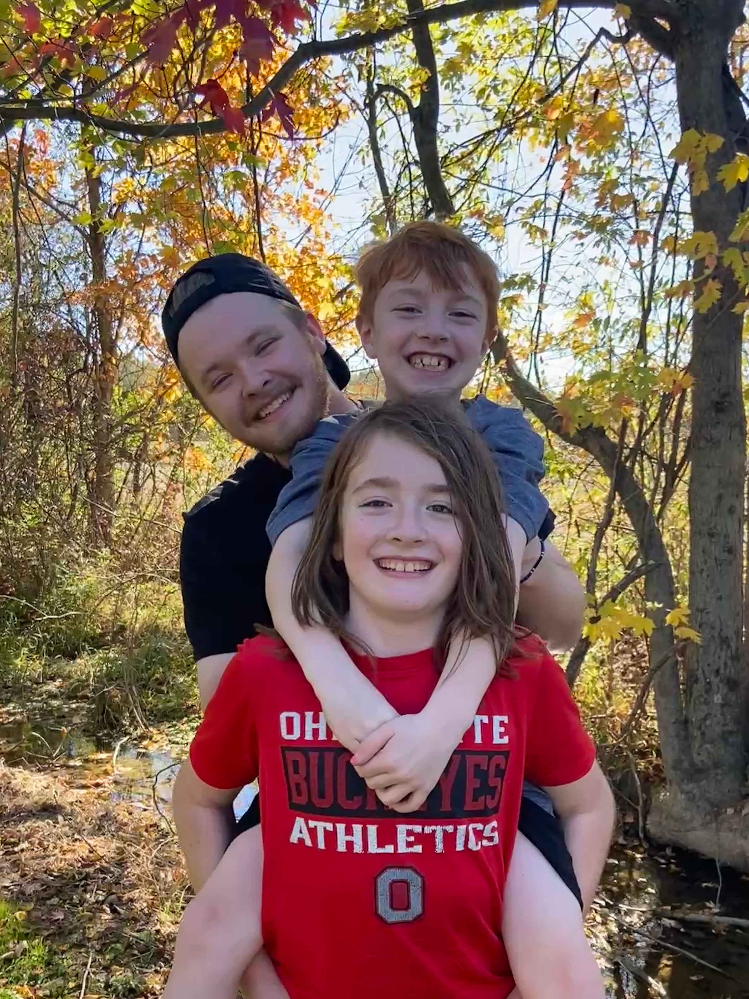 My grandsons, Benjamin Brubaker, Gabe Garlinger, and Eli Garlinger. Every fall we do a photo shoot, and this is them getting tired and silly. One of the best, most natural photos of the day!